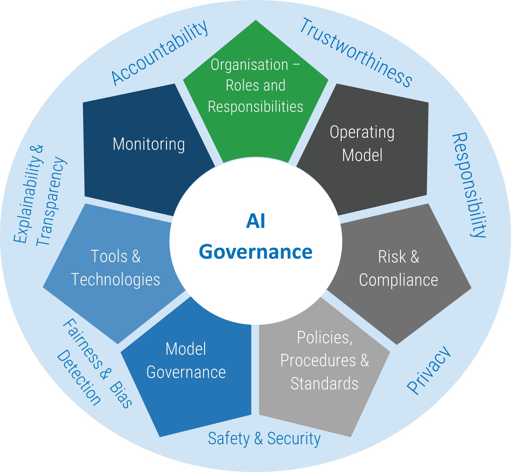 Establishing an effective AI governance involves a comprehensive approach that addresses ethical, legal and operational considerations. We use a tried and trusted approach ensuring all elements of governance are covered off.